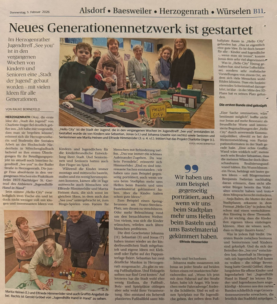Im Herzogenrather Jugendtreff „See you“ ist in den vergangenen Wochen ein besonderes generationsübergreifendes Projekt entstanden: Kinder, Jugendliche und Senior:innen haben gemeinsam die